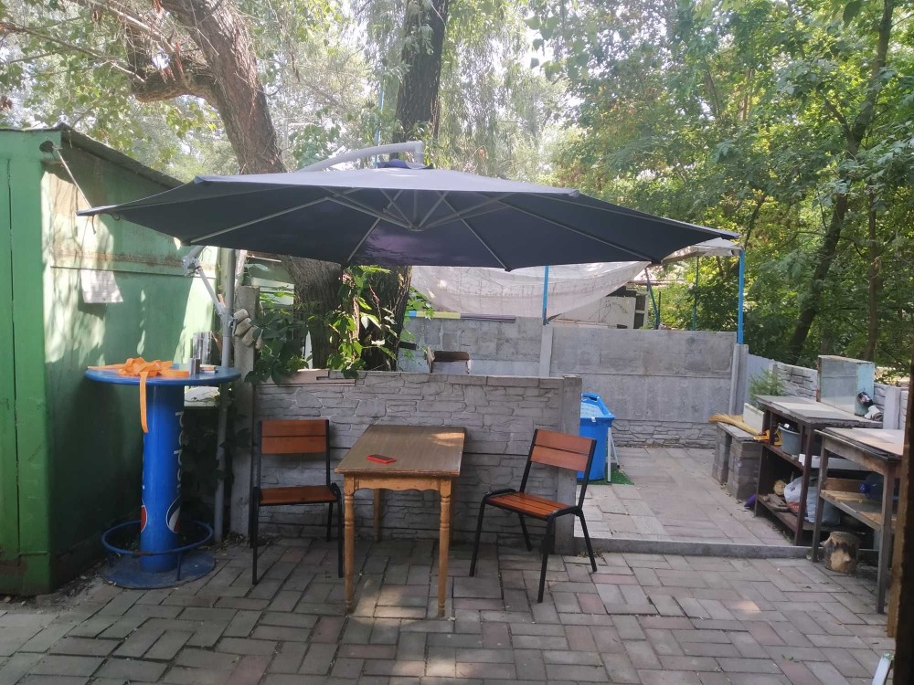 Большая открытая площадка, монгальная зона, место под бассейн или лафет, зонт.