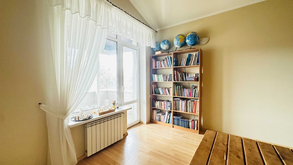 Отже: три поверхи, в межах міста, з житловим підвалом, будинок повністю автономний; своя свердловина, вигрібна яма, проведений газ, інтернет, є дров'яний котел, електрика без обмеження потужності споживання, цегляний будинок, дуже теплий, гараж, сауна, на кожному поверсі сан вузол, п'ять спалень, підійде для великої родини, недалеко хороший ліцей з дитячим садом «Михайло», до метро Житомирська 4 км.