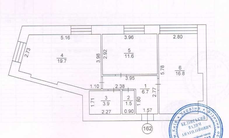 60кв.м. кімната 20 м² кухня 12кв.м.