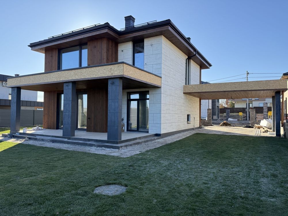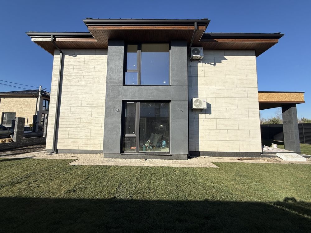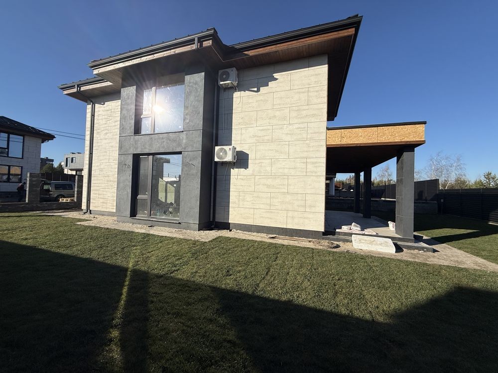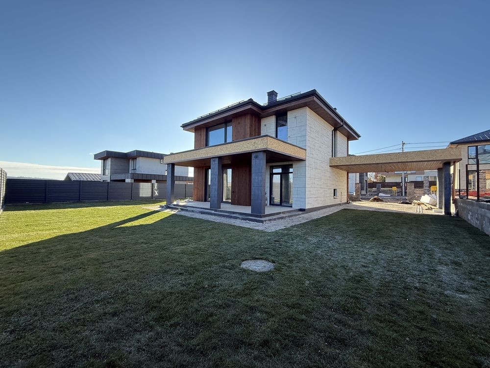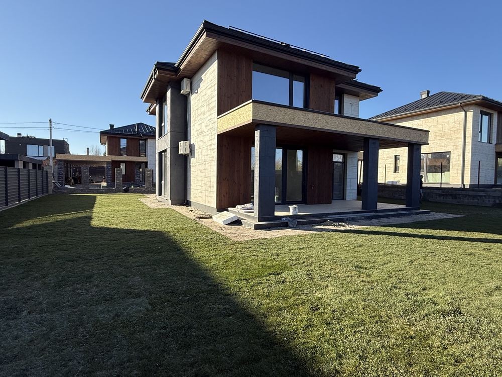 Новий будинок в стилі хай-тек в закритому котеджному містечку біля лісу.