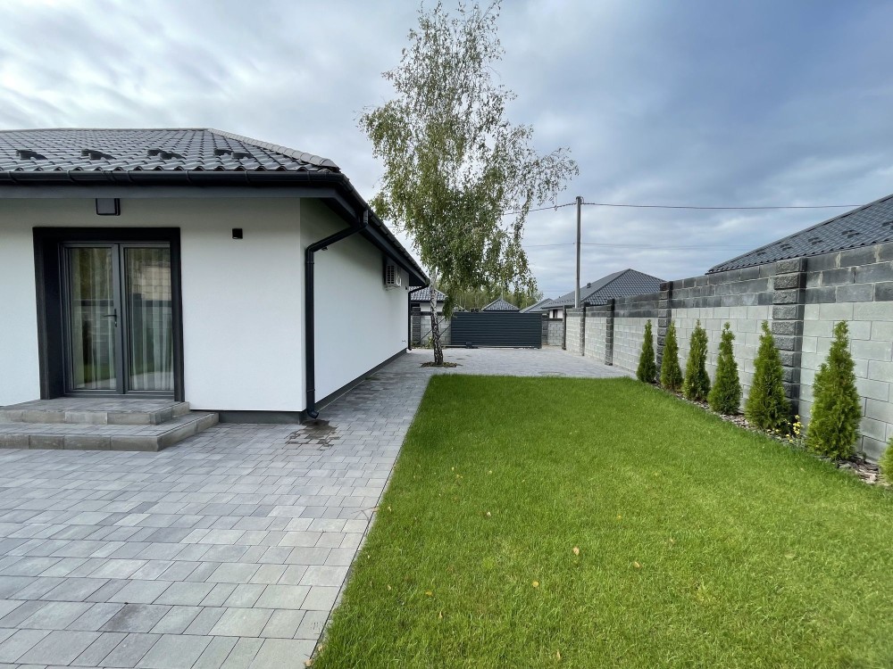 Будинок побудований з газоблоку, утеплений фасад пінопласт, встановлено енергозберігаючі вікна. Територія озеленена, встановлено паркан та автоматичні ворота. Є зона для парковки автомобілів, можливе облаштування навісу.