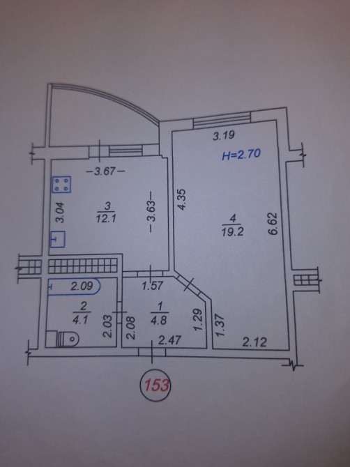 • Площадь кухни 12 м2