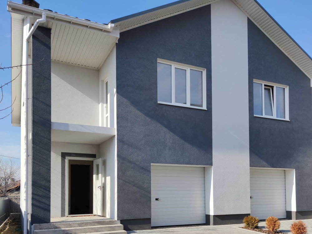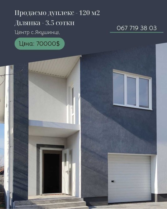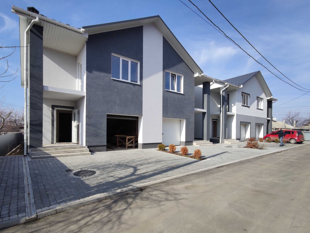 Дуплекс 120 м2 з гаражем. Ділянка 3.5 сотки. Зручне планування: на першому поверсі гараж, простора кухня-вітальня з виходом на терасу, ванна. На другому поверсі: 3 окремі кімнати та ванна.