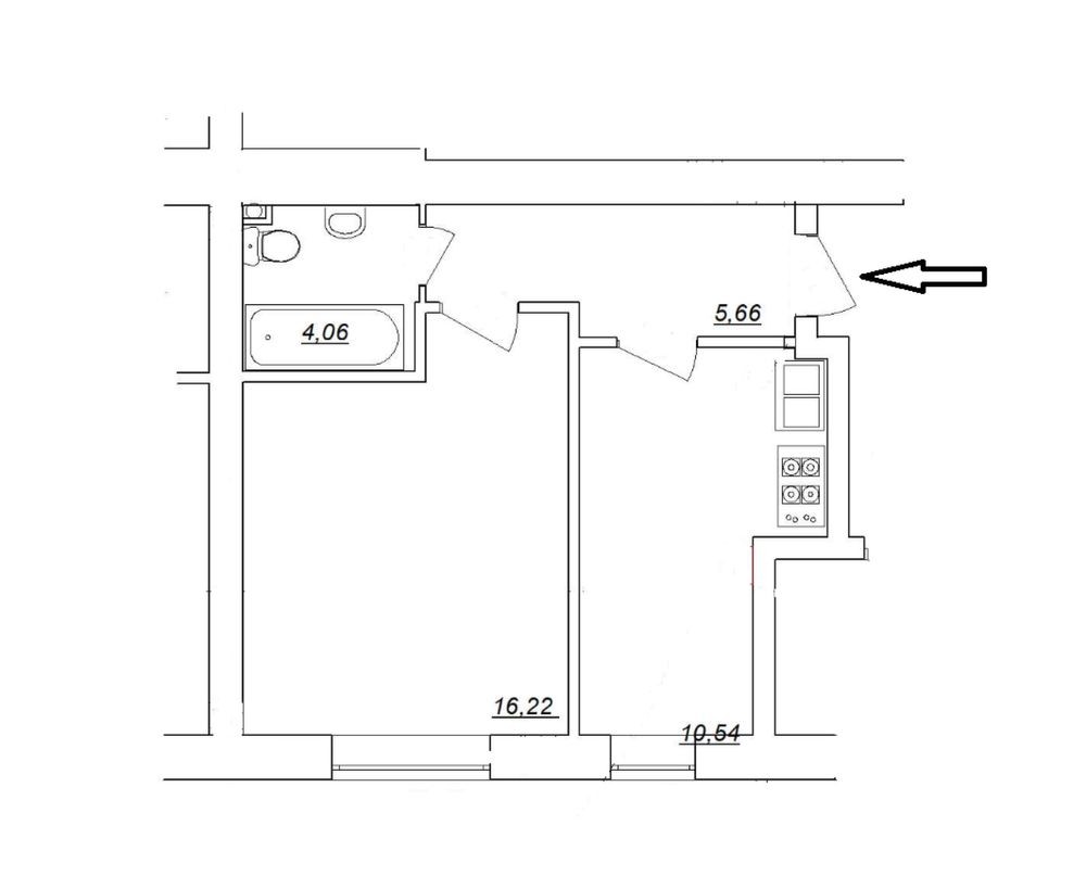 • Площадь кухни 6 м2