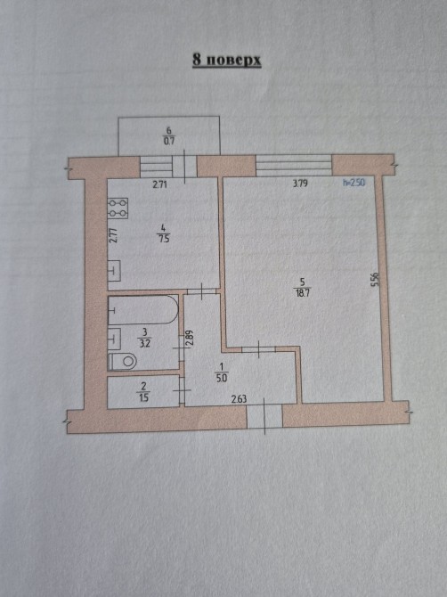 • Площадь кухни 8 м2