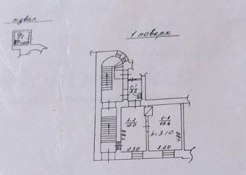 33 м2, 1/3 бельєтаж. Два фасадних вікна на вулицю. Пічне опалення.