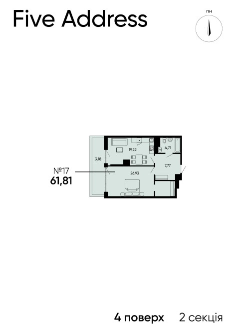 Площа 61.81 м.кв