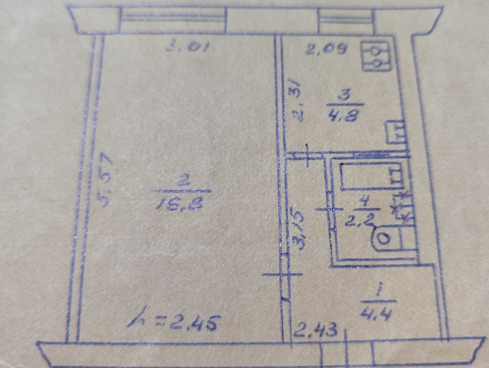 • Площадь кухни 4.8 м2