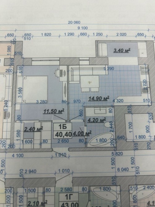 • Общая площадь 40.4 м2