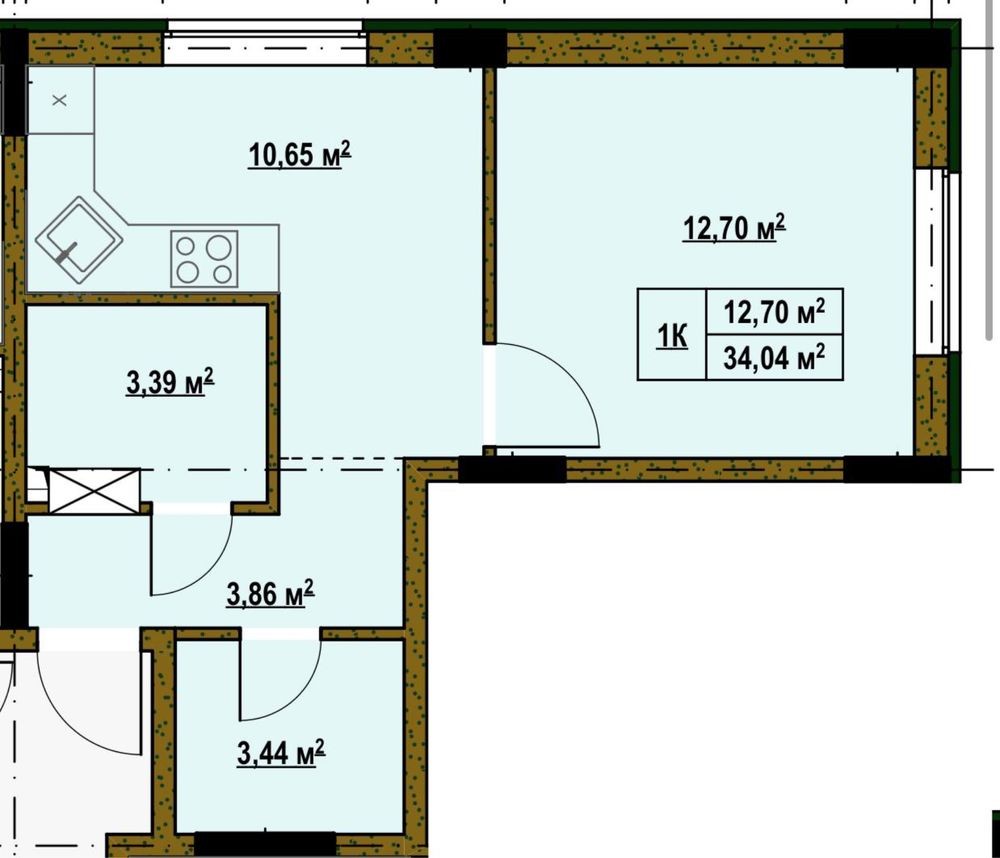 • Общая площадь 34.04 м2