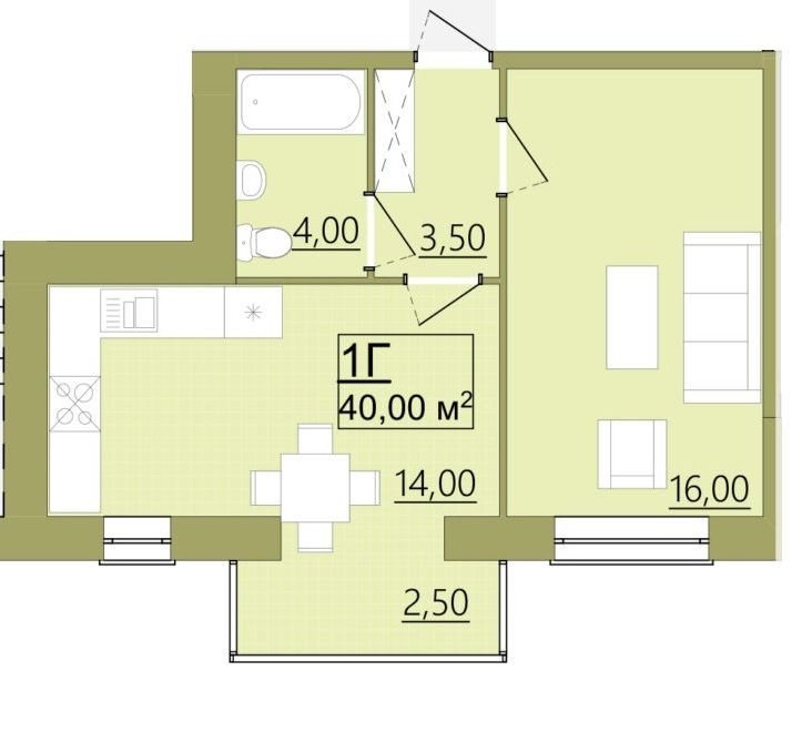 • Площадь кухни 14 м2