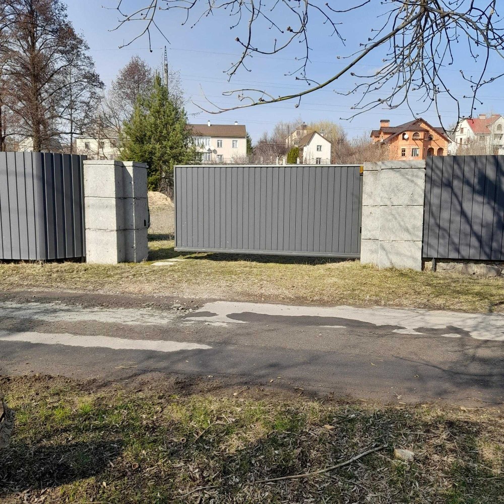 Ділянка огороджена парканом з металопрофілю є відкатні ворота.