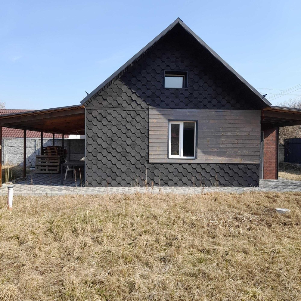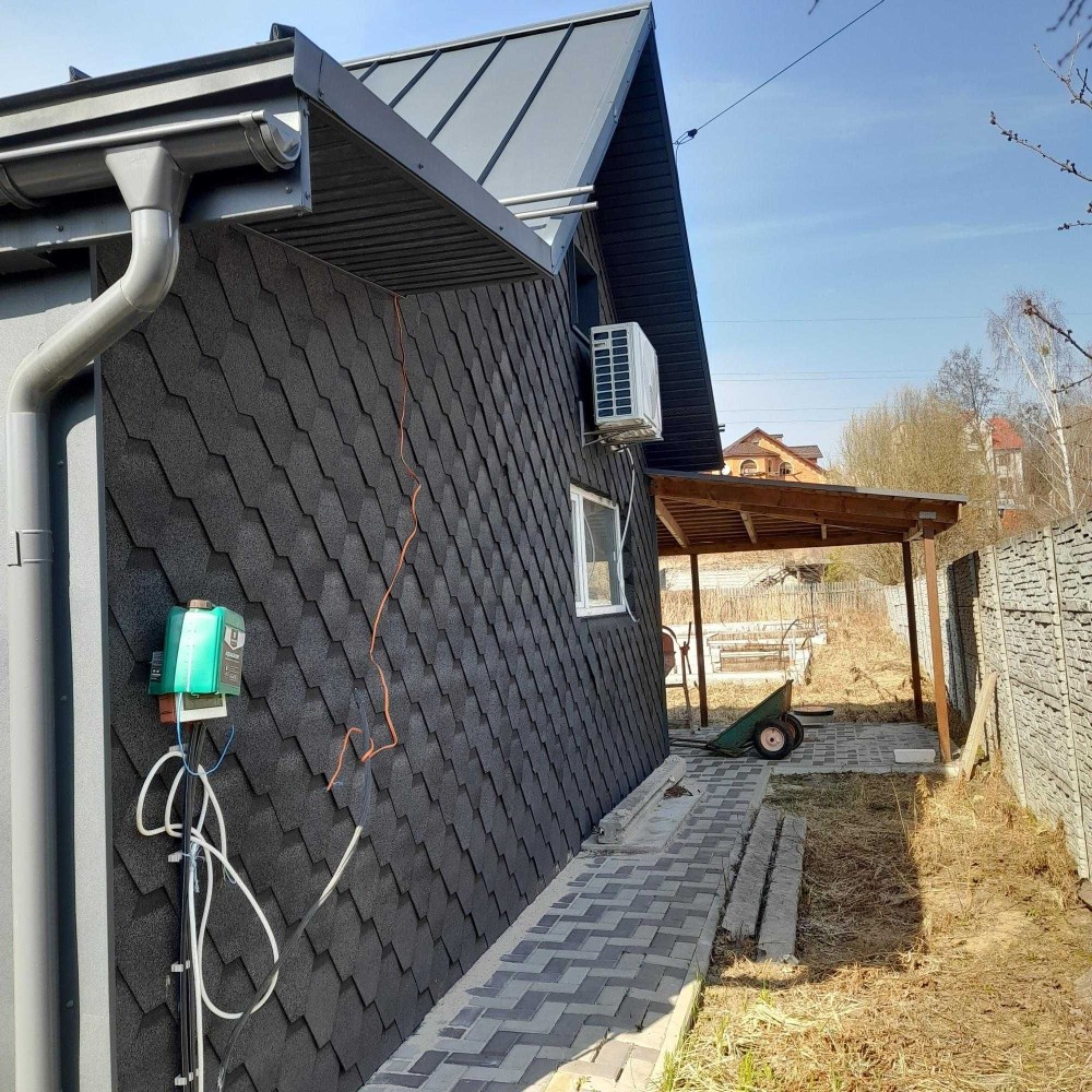 Будинок побудований з цегли, утеплений мінватою та облицьований металопрофілем.