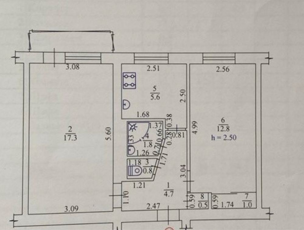 • Площадь кухни 6 м2