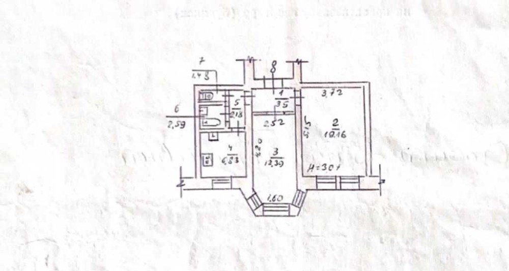 Висота стелі 3.05 м.