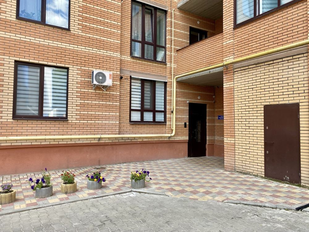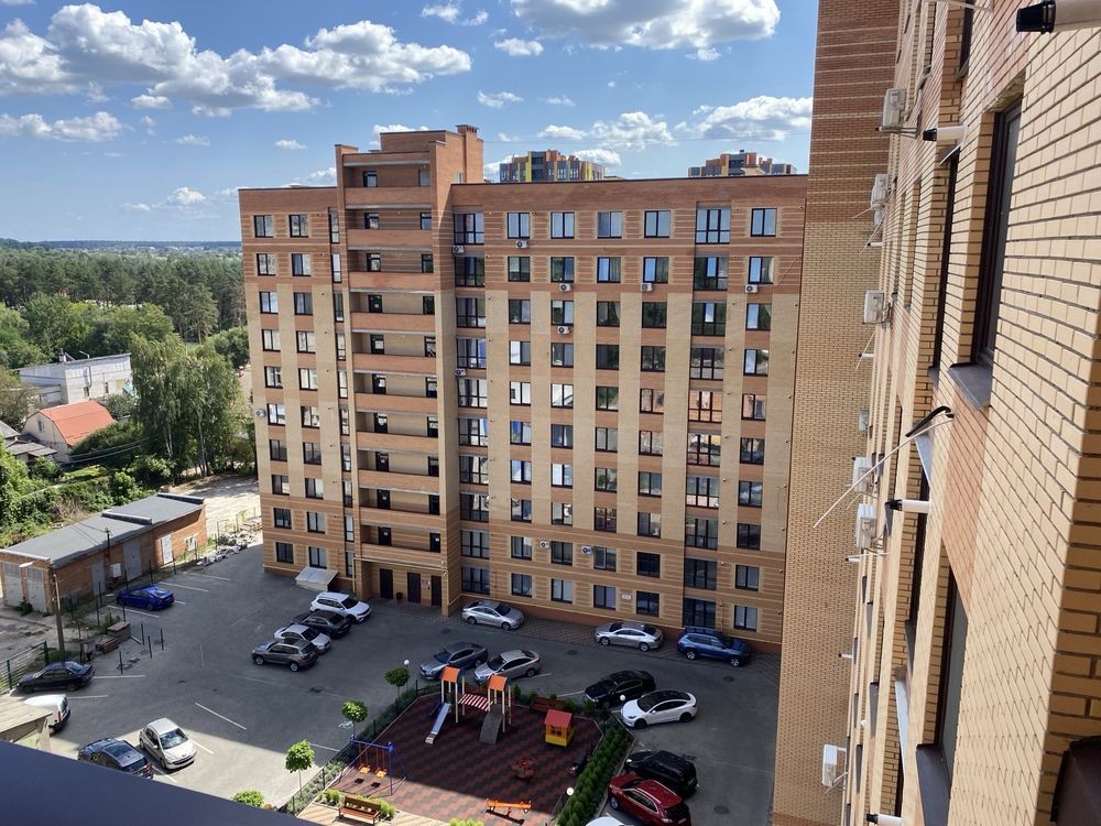 Квартира площею 64м2, на девʼятому поверсі 11-ти поверхового цегляного будинку.