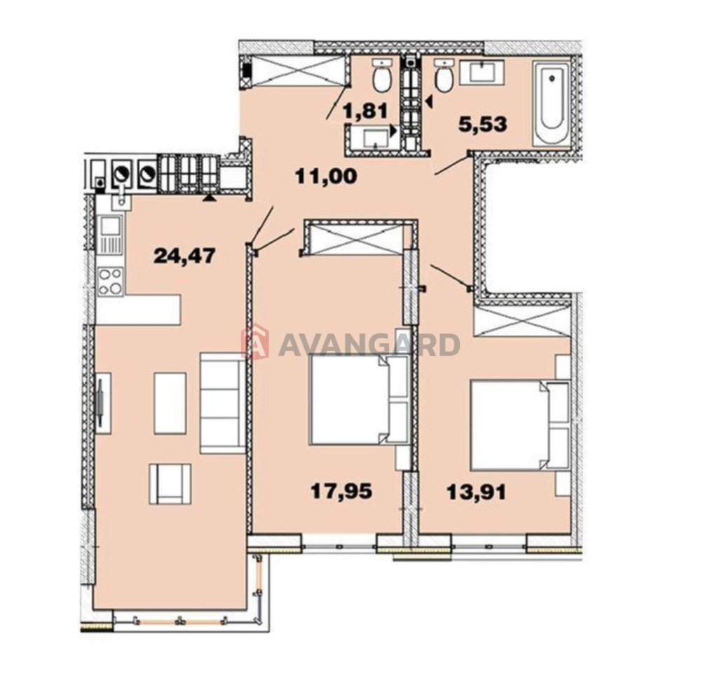 • Двухкомнатная