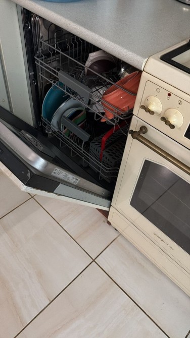 -Сучасна кухня з посудомийною машиною, духовкою та меблі (зручний диван, стіл).