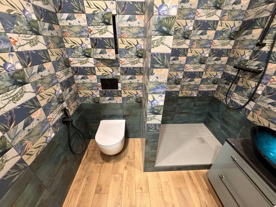 Ванна кімната та туалет повністю обладнані нова сантехніка, бойлер, сучасна плитка та якісне оздоблення. Є невелика гардеробна або місце для зберігання речей, виведено місце під кондиціонер, проведений інтернет-кабель, встановлені броньовані сталеві двері.