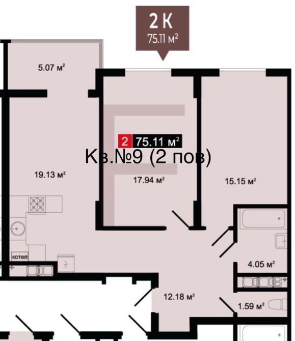 • Загальна площа: 75,11 м²