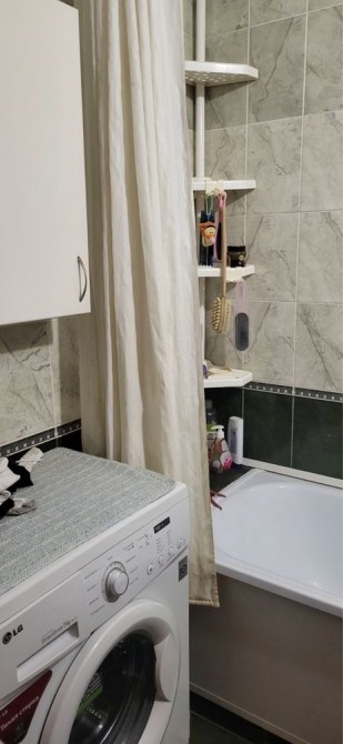 Балкон застеклён, лоджия утеплена и застеклена. Санузел раздельный, облицован кафелем, установлен бойлер для подогрева воды. Кухня 9,5 кв. м со встроенной мебелью, вытяжкой и СВЧ — всё остаётся.