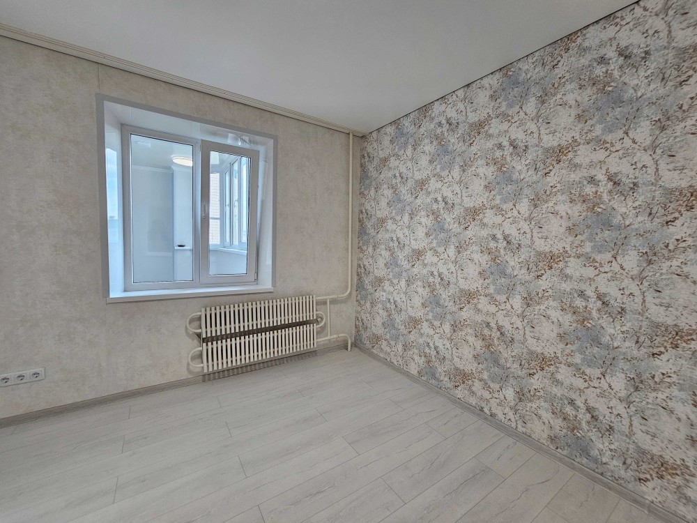В квартире три отдельные спальни. Во всех комнатах выровнены стены, поклеены качественные обои с акцентной стеной, уложен ламинат, натяжные потолки.