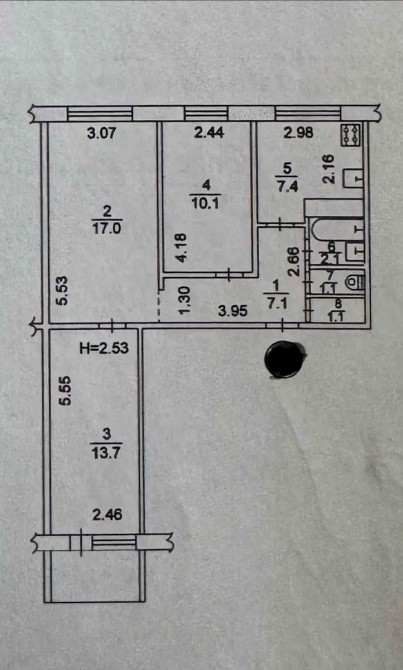 3 раздельные комнаты. Кухня. Раздельный Сан.Узел Т/Ванна.