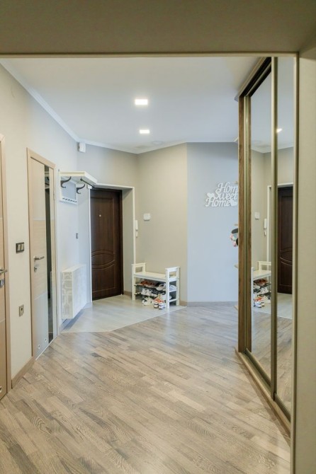 Великий коридор, кухня, 2 санвузла, гардеробна, 2 балкона (1 зроблений як тераса). На кухні є потаємна комора, дуже вмістка. Всі меблі робились під індивідуальне замовлення. В кожній кімнаті є кондиціонер, полове опалення. Кімнати досить великі та просторі.