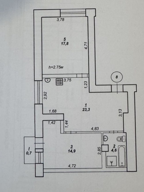 • Площадь кухни 23.3 м2