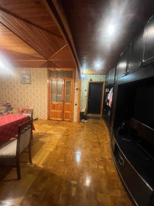 Підлога паркет. Міжкімнатні двері-дерево. Вікна дерев"яні склопакети. Балкон та лоджія обшиті деревом, вікна склопакети.