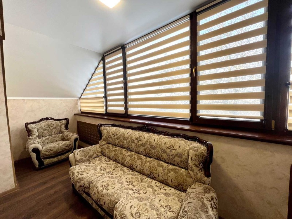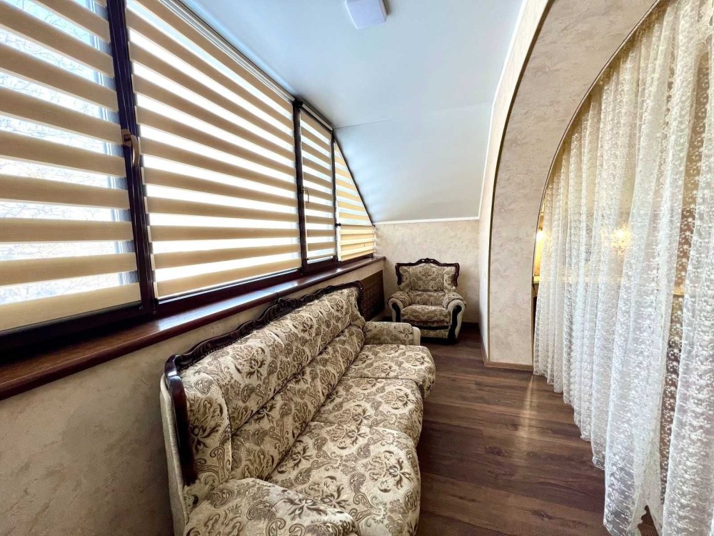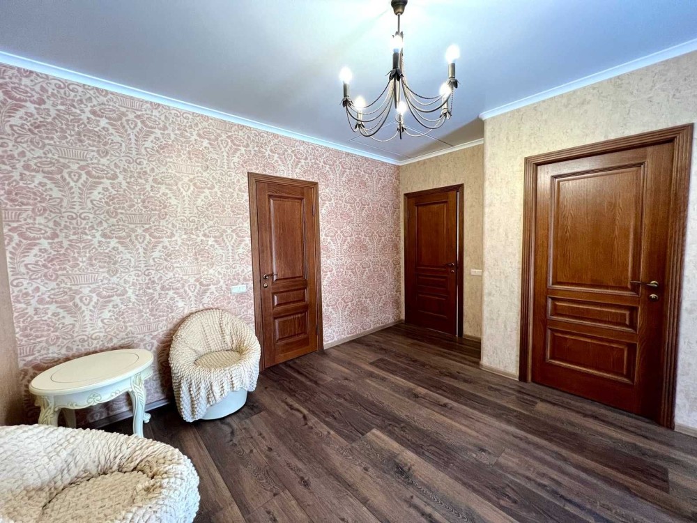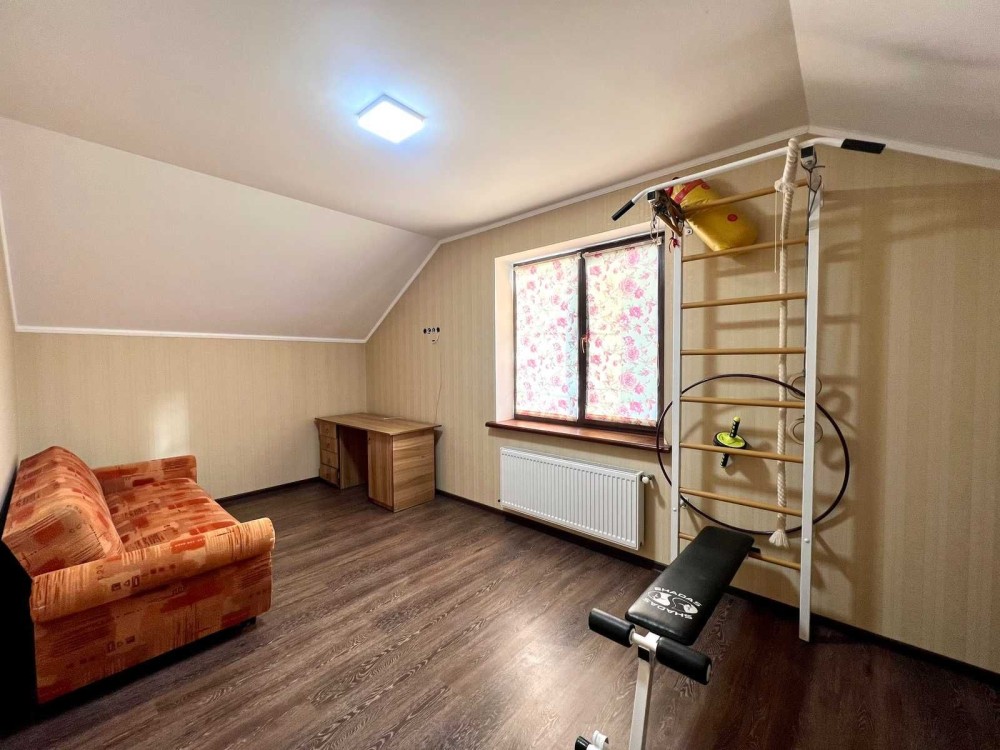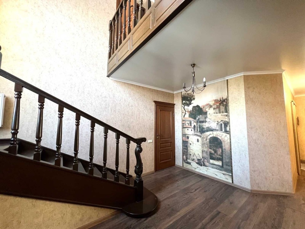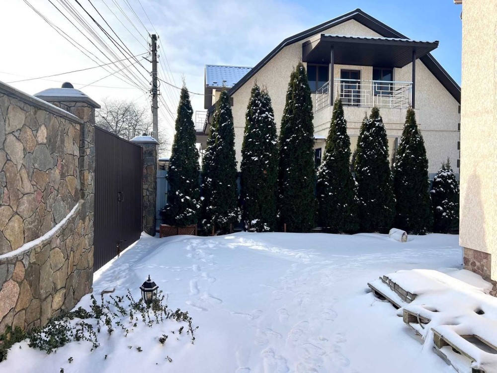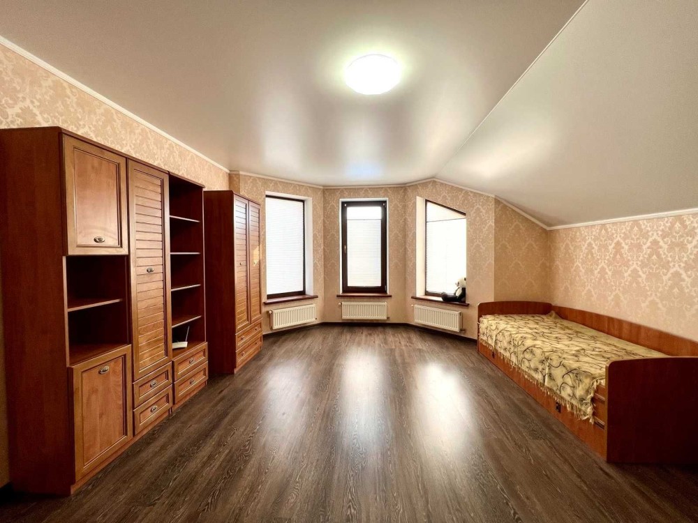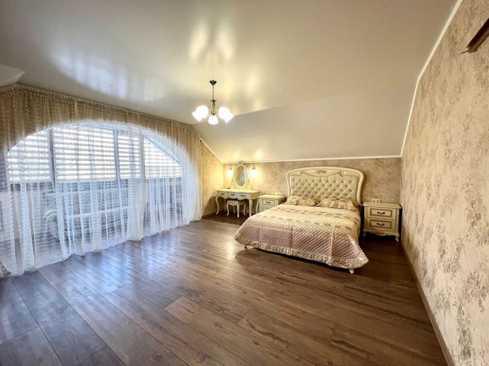 Максимально продумане планування: 5 кімнат, гардеробна кімната при вході і окрема велика гардеробна з основної спальні, кухня-студія з виходом на терасу, 2 санвузли, баня-сауна, лоджія, кабінет, спортзал, горище, простора бесідка з зоною барбекю, гараж на 2 авто, підвал, погріб.