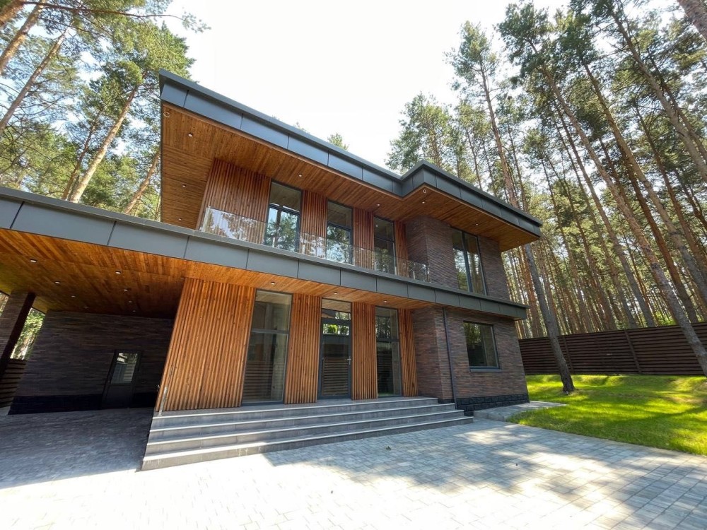 Будинок розташований на закритій території поруч із сосновим лісом — тут панує тиша, свіже повітря і відчуття справжнього заміського життя всього за кілька хвилин від Києва.