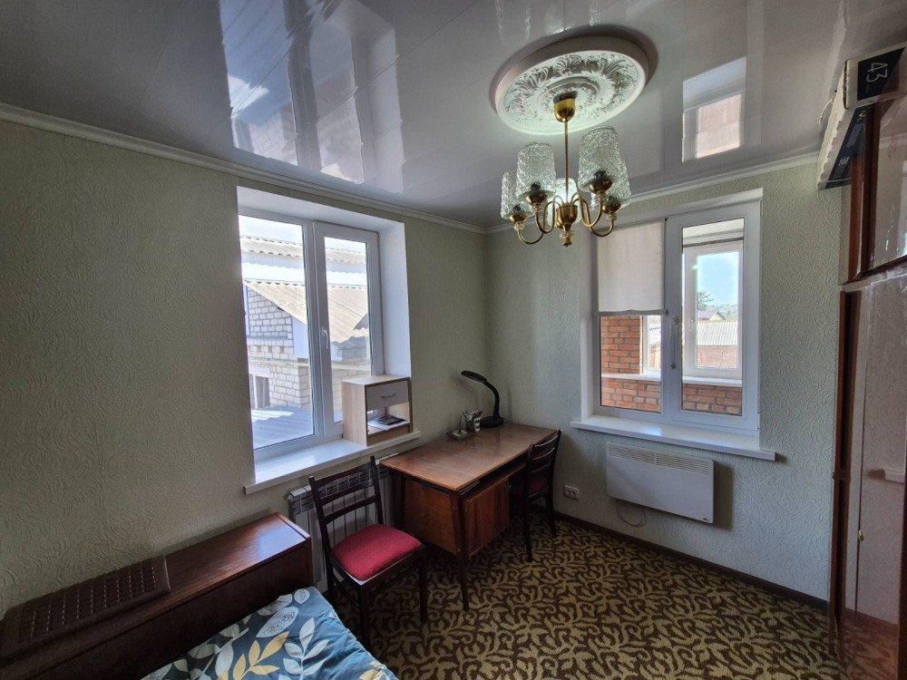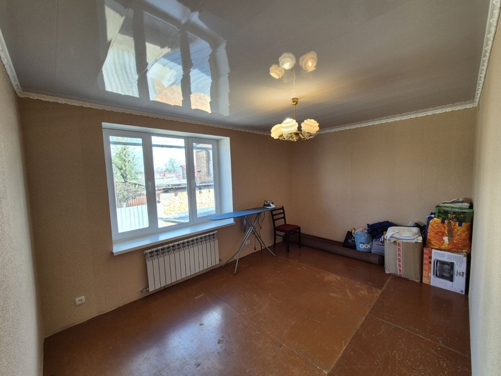 Друга частина будинку близько 63кв.м.+напівпідвальний поверх площею близько 50кв.м. 2 суміжні кімнати, простора кухня, санвузол. Газове автономне опалення, косметичний ремонт, м/пл вікна. Землі близько 4 соток, приватизована. Також окремий двір, заїзд.
