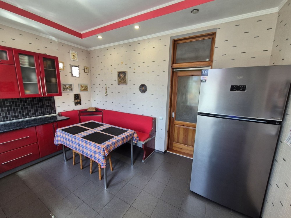 Пів будинку 98кв.м. +напівпідвальний поверх площею 91кв.м. з розділенням на кімнати (висота стелі 2-2,20м.). В цій частині будинку 3 окремі кімнати+зал, велика кухня 15кв.м та окремо ванна з туалетом. По стану: ремонт, газове опалення, м/пл вікна. 6 соток приватизованої землі, літня кухня з газом та водою в хорошому стані, 2 гаражі.