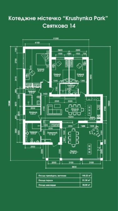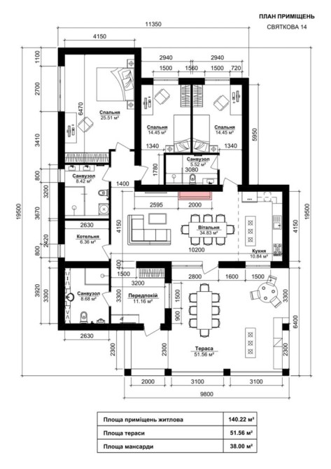 2. Площа будинку 140м.кв+51м.кв (тераса)
