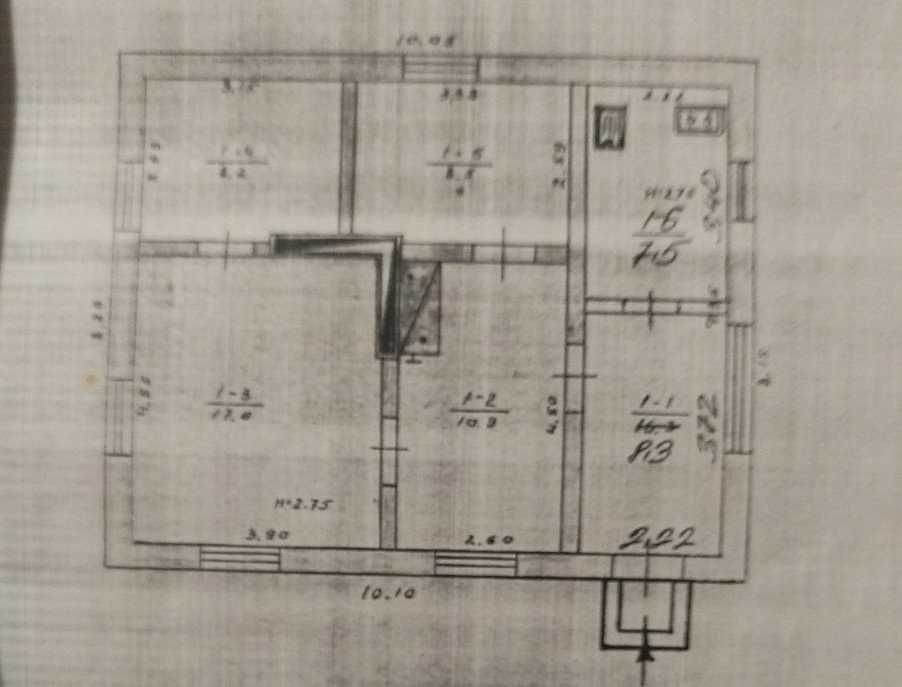 Житловий будинок складається з першого та мансардного поверхів. Загальна площа будинку із допоміжними спорудами становить 173,1 м.кв., з яких: а) площа будинку ‒ 131,0 м.кв., у тому числі житлова (основна) ‒ 94,1 м.кв. та допоміжна (підсобна) ‒ 39,6 м.кв.; б) площа тераси – 23,1 м.кв.; в) площа трьох балконів – 13,4 м.кв. (5,8 + 4,9 +2,7 м.кв.); площа ґанку – 5,6 м.кв.