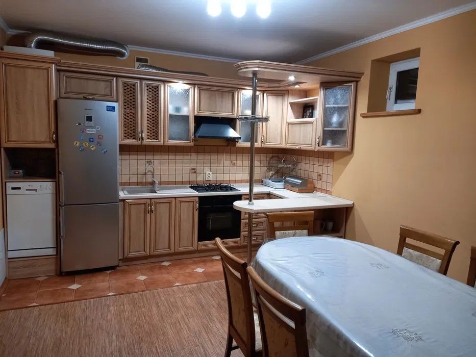 Є 3 кімнати, 2 холи, кухня. 2 санвузли - ванна та душева , всі меблі та техніка. Підвал, гараж, 2 заїзди.