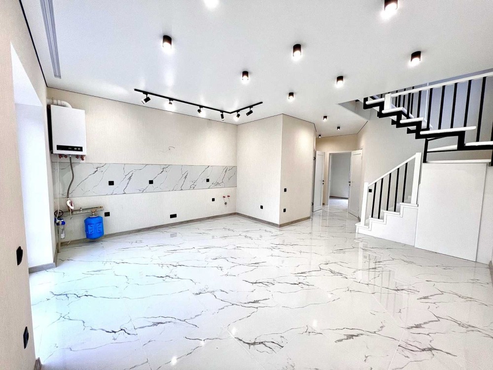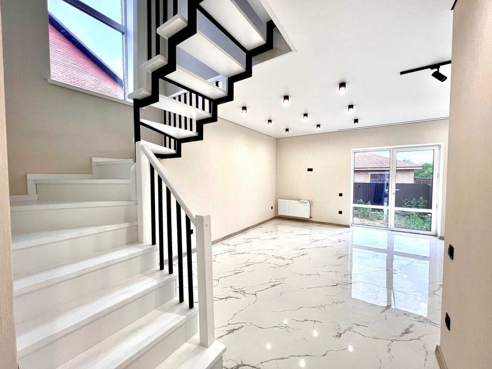 Цей просторий дуплекс площею 105 м2 має все необхідне для комфортного та щасливого життя. Розташований на ділянці до 4 соток, він пропонує чудові умови для проживання в сучасному стилі.