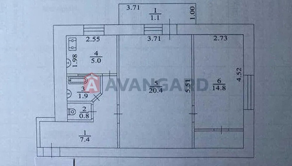 • Общая площадь 52 м2