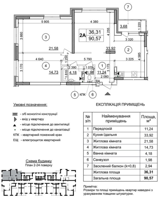 22 поверх. 90,5/36,28/33,92 кв.м.