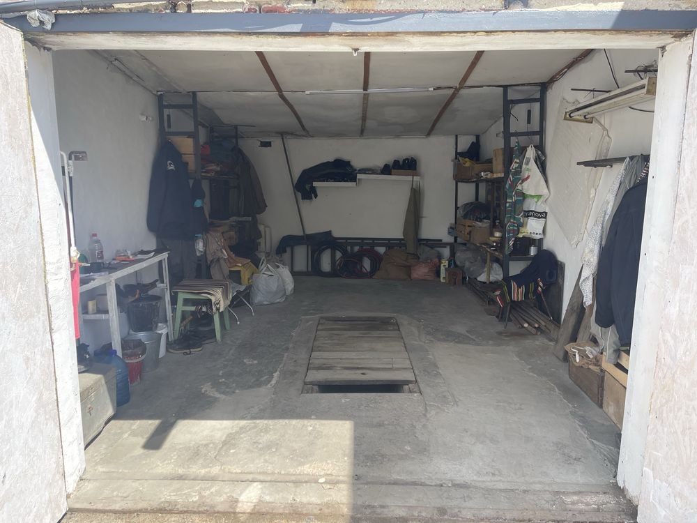 Гараж простий є оглядова яма дліний стандарт знаходиться біля естакади прям, світло самий центр