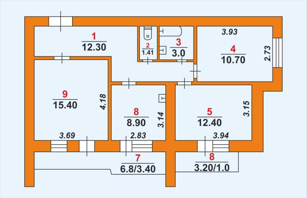 • Общая площадь 69 м2