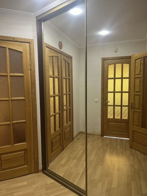 В квартирі зроблений якісний ремонт,поміняна сантехніка, електрика, батареї, обоів немає , кругом декоративна шпаклівка, паркет, двері з натурального дерева. Кухня з натурального дерева. Багато освітлення. Залишаються всі меблі.