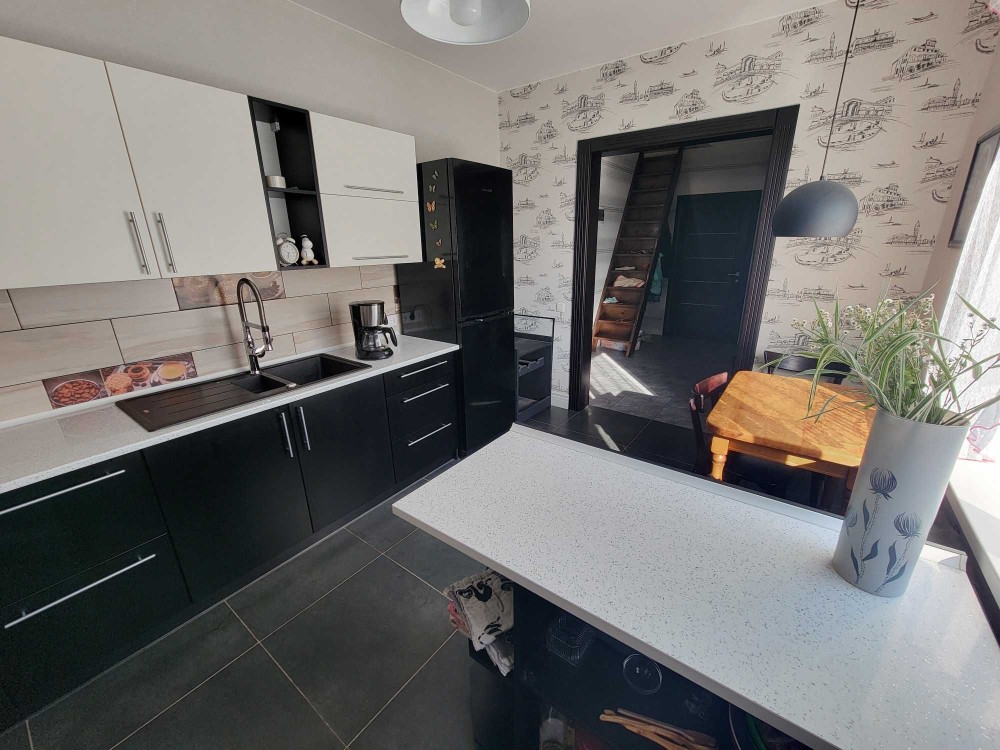 Продається просторий та сучасний будинок площею 102 м² у зручному та тихому районі, всього за 25 хвилин пішки до центру міста. Будинок має 4 житлові кімнати, затишну кухню, ванну кімнату та коридор. Для вашої зручності в кухні встановлено сучасну та дорогу кухонну техніку Bosch. Загальна площа господарства приблизно 40 сотих.
