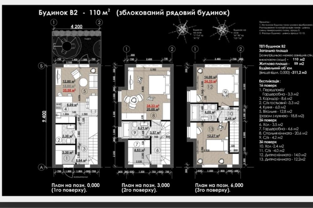Загальна площа будинку становить 110 кв.м