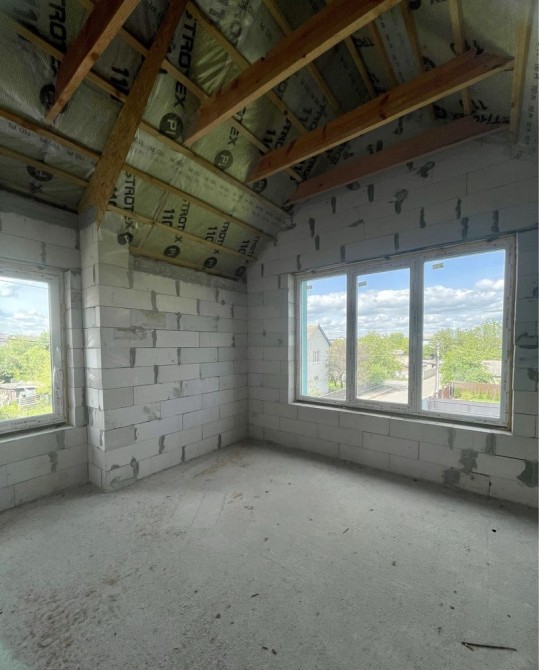 Будинок побудований з газоблоку товщиною 300 мм та утеплений по фасаду 100 мм пінопласт, міжповерхове монолітне перекриття, бетонна основа підлоги, покрівля даху - покрівельний метал 0,45 мм., утеплювач мінвата 200мм, пароізоляція.
