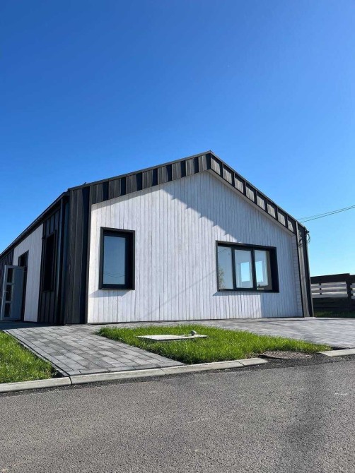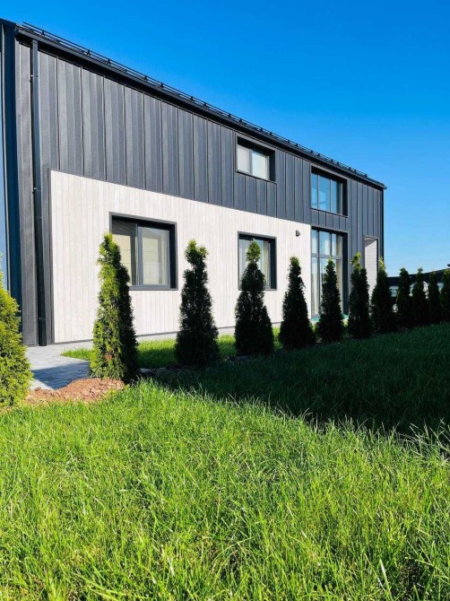 Будинок в стилі «Барнхаус», фасад будинку оздоблений словацьким клікфальцем у кольорі «графіт» та українським планкеном з смереки. Простора тераса, що викладена з модрини, виходить на схід. Будинок під’єднаний до електромережі 10 кВт та міського водопроводу. У будинках встановлено електричні котли, що в поєднанні з двозонними лічильниками є найдешевшим варіантом опалення. В якості альтернативного джерела опалення закладено комунікації під твердопаливну піч-камін. Вікна семикамерні із тришаровим склопакетом, що вкритий УФ-відбиваючим напиленням.