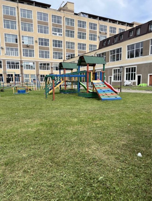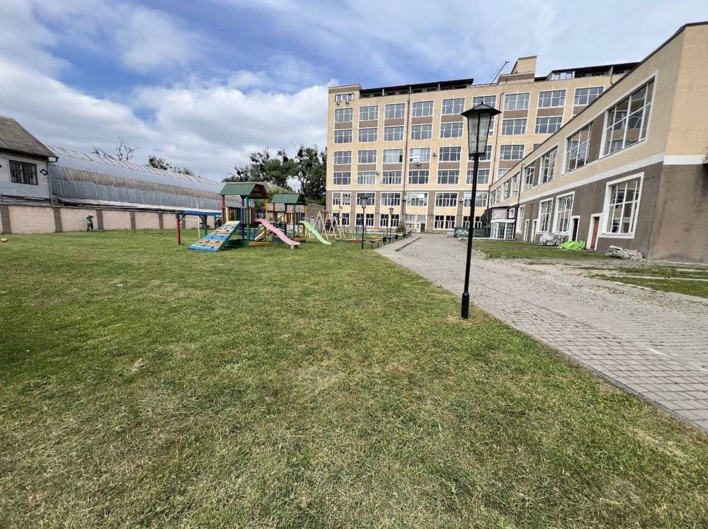На території — велика парковка та дитячий майданчик.