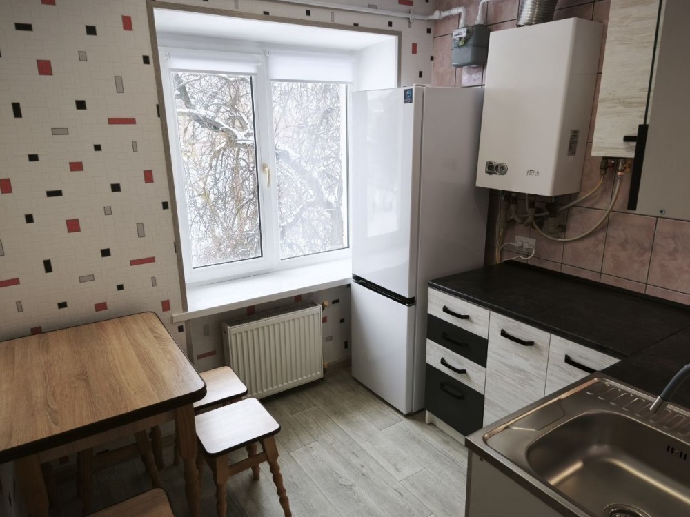 Кухня та ванна кімната мають усі необхідні меблі та техніку (нові холодильник, варильна поверхня та пральна машина). В житловій кімнаті є новий диван.