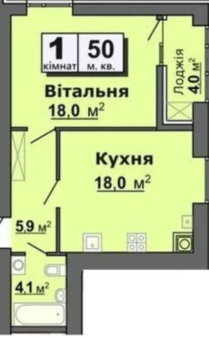 Площа квартири 50 кв.м, є можливість перепланування у 2-х кімнатну квартиру